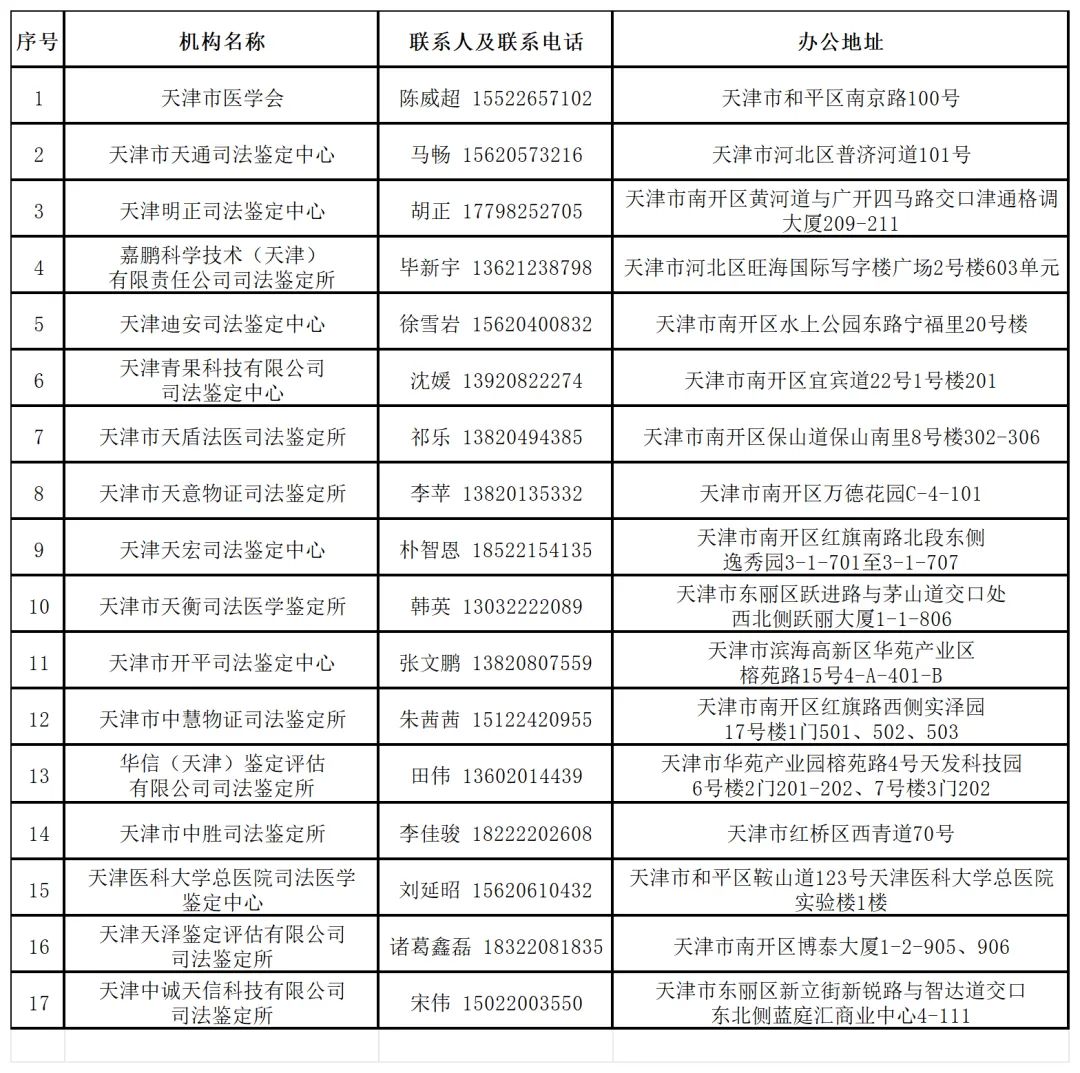 5.天津法院醫(yī)療損害類鑒定評(píng)估機(jī)構(gòu)名錄