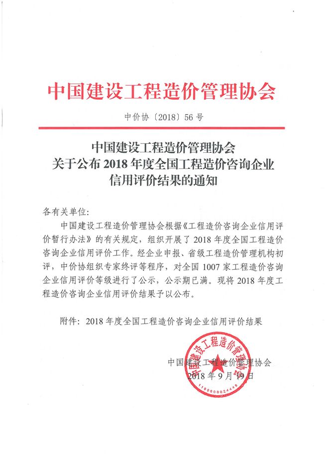 我公司榮獲2019年度工程造價咨詢企業(yè)信用評價AAA-級